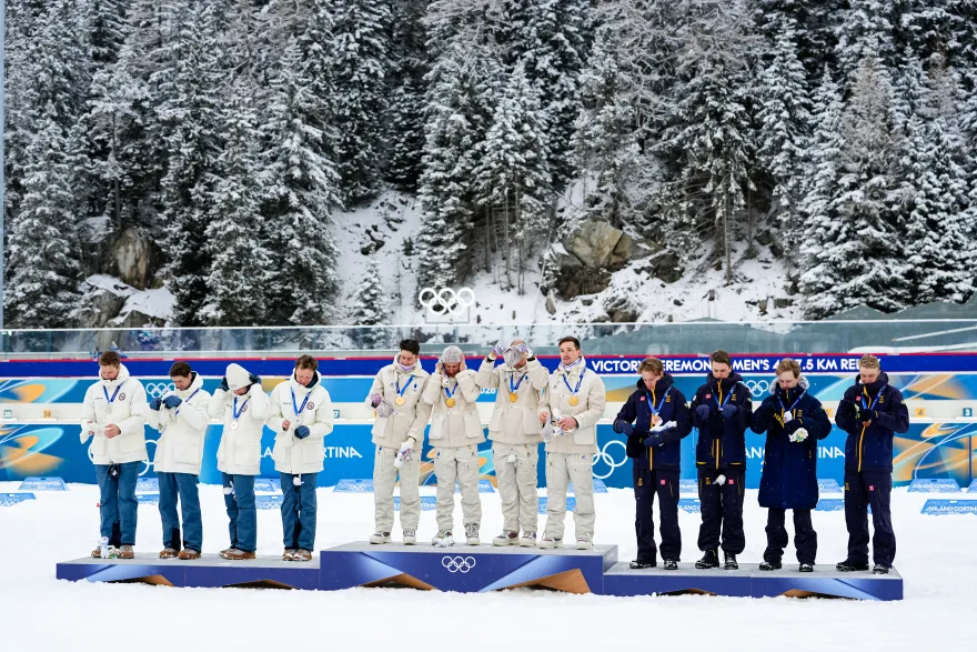 Trés mal lancés des le premier tour avec un retard de plus de 50 secondes les Francais avaient besoin d’un miracle pour espérer revenir en course. Ce miracle, Emilien Jacquelin qui parvient a remonter touts ses concurrents et qui offre une fin de course exceptionelle qui finissenty devant les norvégiens et qui offre la 16éme médaille à l’équipe de france. Qui battent un record olympiques.
